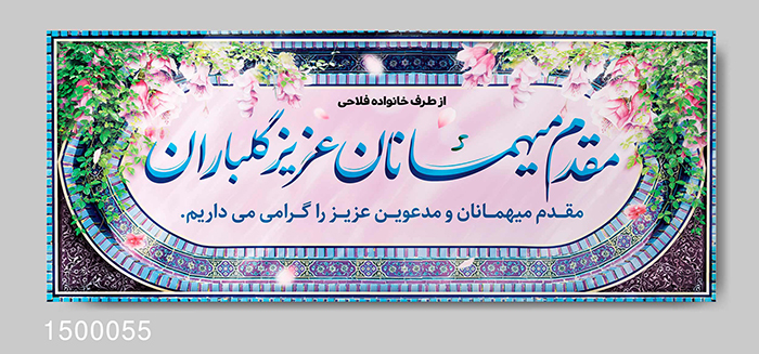 این بنر جهت اعلام خیر مقدم و خوش آمد گفتن به مسئولین بالا رتبه یا مهمانان ویژه مراسم قابل استفاده است. در این بنرها باید حتماً اسم مسئولین به طور ویژه ذکر شود.