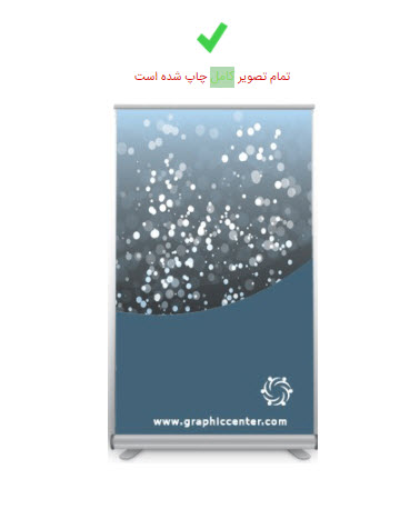 در موارد نادر و به خاطر خطاهای چاپی امکان دارد که تصویر طرح به طور کامل بر روی بنر چاپ نشود و به عنوان مثال چند سانتیمتر از بنر مانند شکل زیر خالی بماند. در صورتی که طرح شما به طور کامل یا به درستی روی بنر چاپ نشده باشد، در اسرع وقت یا حداکثر ظرف 2 روز پس از دریافت محصول، به ما اطلاع دهید و فقط بنر را (بدون سازه) برای ما ارسال کنید. کارشناسان فنی ما در چاپ آقا، ایراد مطرح شده توسط شما را بررسی میکنند و در صورت تایید، سفارش شما مشمول گارانتی شده و مجددا با دقت و نظارت کامل، بنر چاپ و برای شما ارسال میشود.